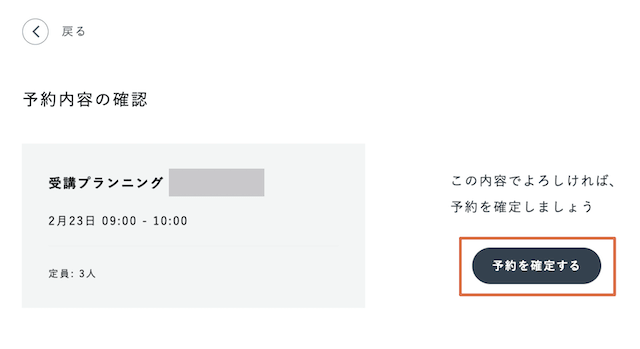 ④内容を確認し、予約を確定を押下する