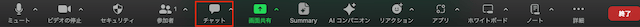 ①Zoomの下に出ているツールバーのチャットを選択すると右横にチャットが立ち上がる