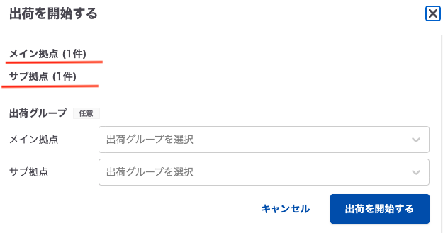 出荷開始時には、Shopifyのロケーションに紐づいた拠点が自動で選択されます。