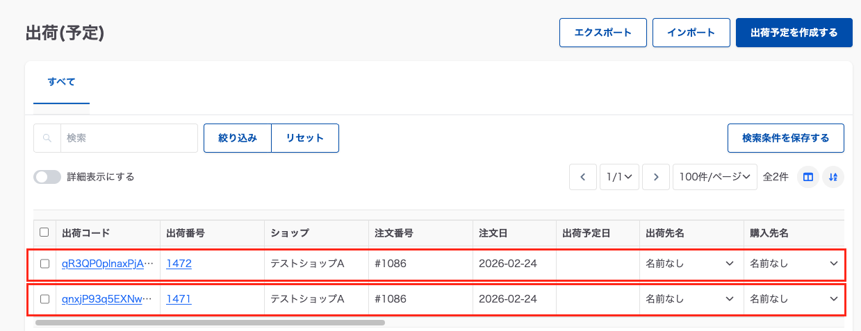 取り込みに成功した出荷情報はロジクラ出荷予定に反映されます。