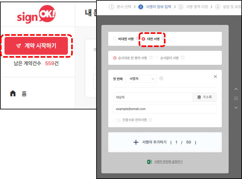 2. 서명자 정보 입력 단계에서 상단의 ‘대면 서명’을 체크합니다.