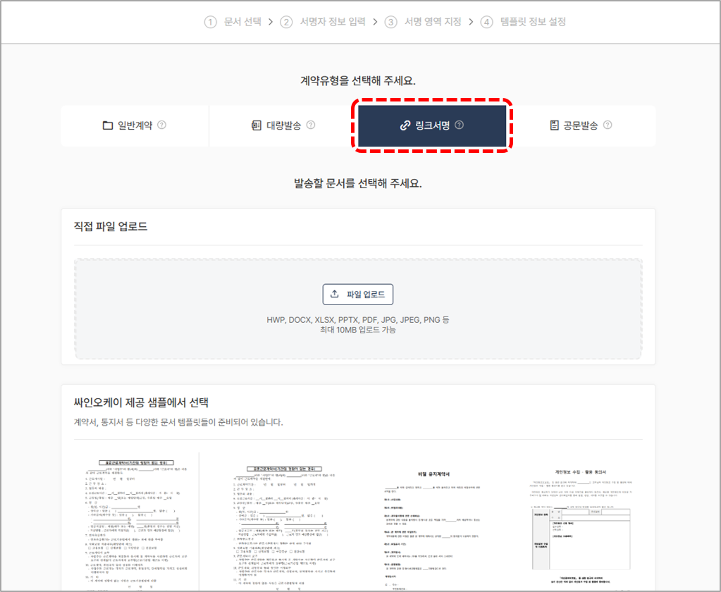 3. 계약 유형을 [링크서명]으로 선택한 후, 계약서 파일을 업로드 합니다.