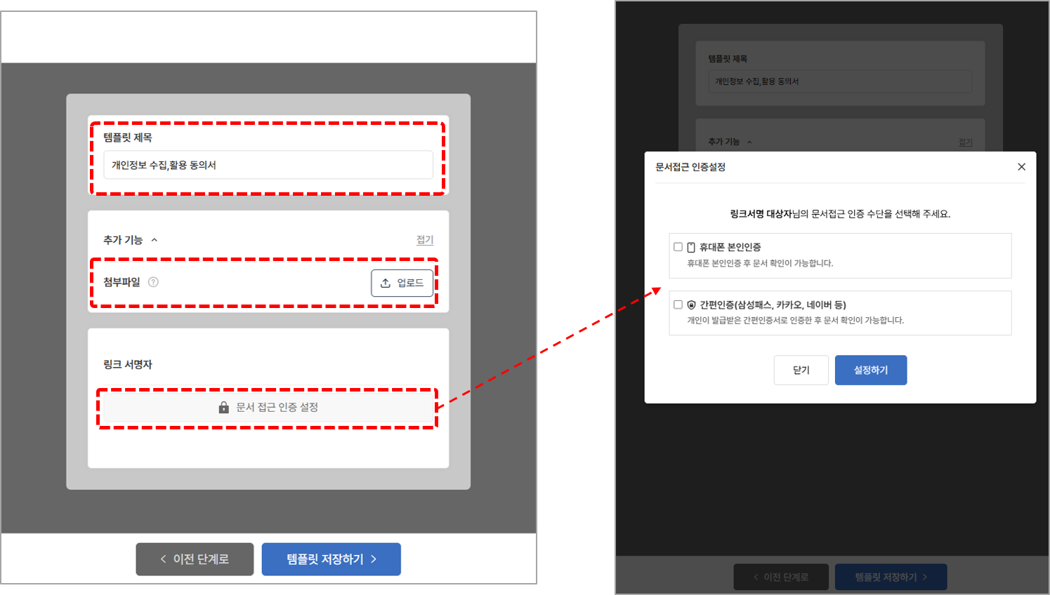 6. 서명자의 문서 접근 인증 설정을 설정할 수 있습니다.