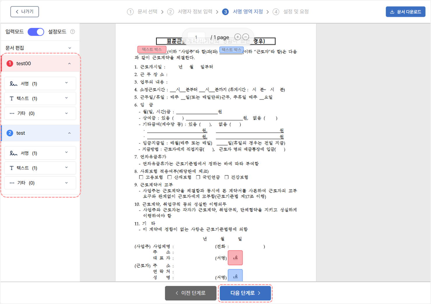 3. 서명자 정보입력이 완료되었다면, [다음 단계로 >] 버튼을 클릭합니다.