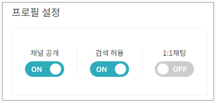 비즈니스 채널 변환이 완료되었다면, 프로필 설정에서 채널 공개 / 검색 허용을 ON으로 전환합니다.