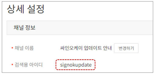 관리 - 상세설정의 검색용 아이디를 입력합니다.