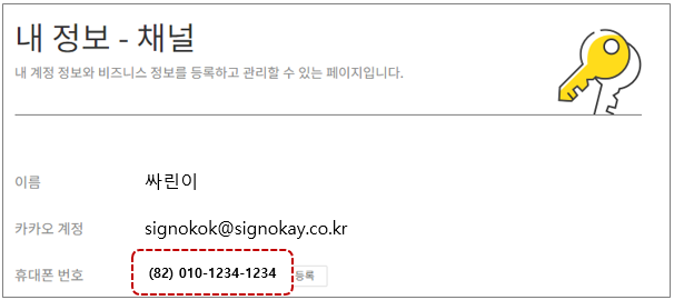 설정 - 내 정보 - 채널의 휴대폰 번호와 일치하게 입력합니다.