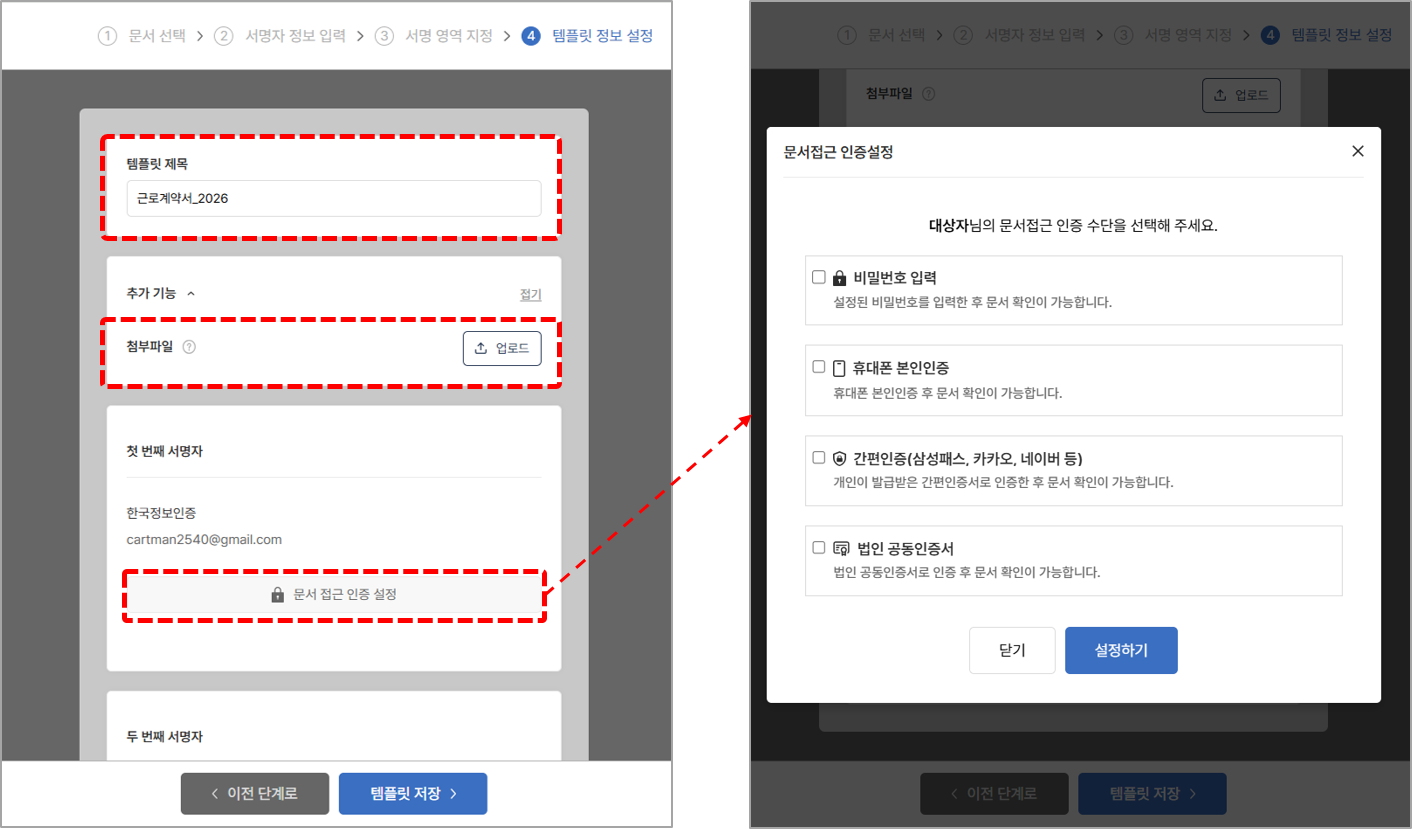9. 수신자별로 문서 접근 인증 설정을 설정할 수 있습니다.