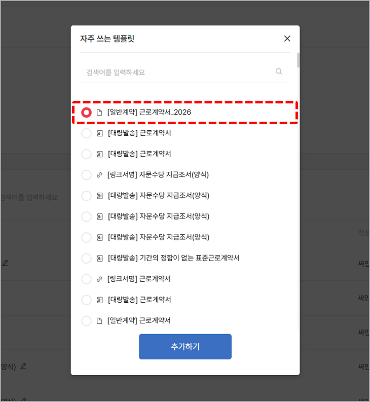 3. 자주 쓰는 템플릿을 선택하고 [추가하기] 버튼으로 상단에 고정합니다.