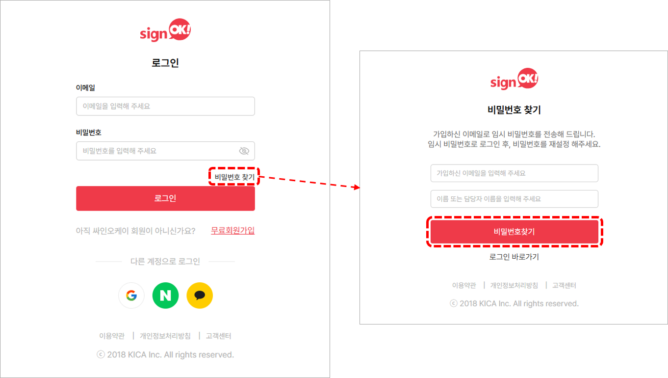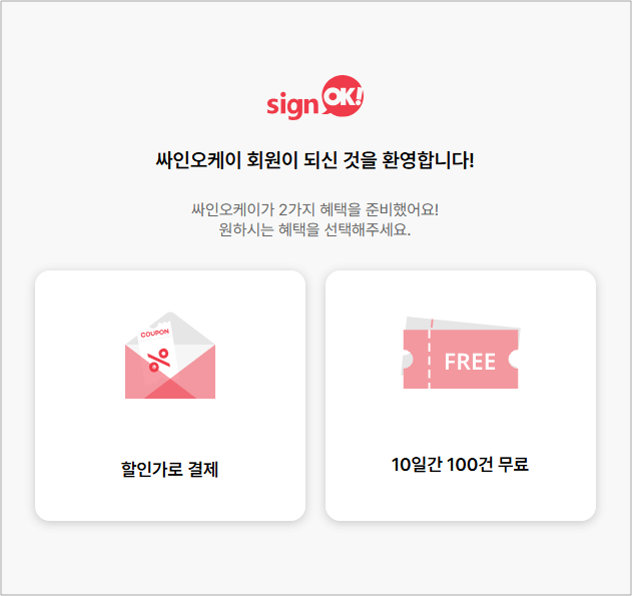 이메일 주소로 간단하게 싸인오케이에 회원가입이 가능합니다.