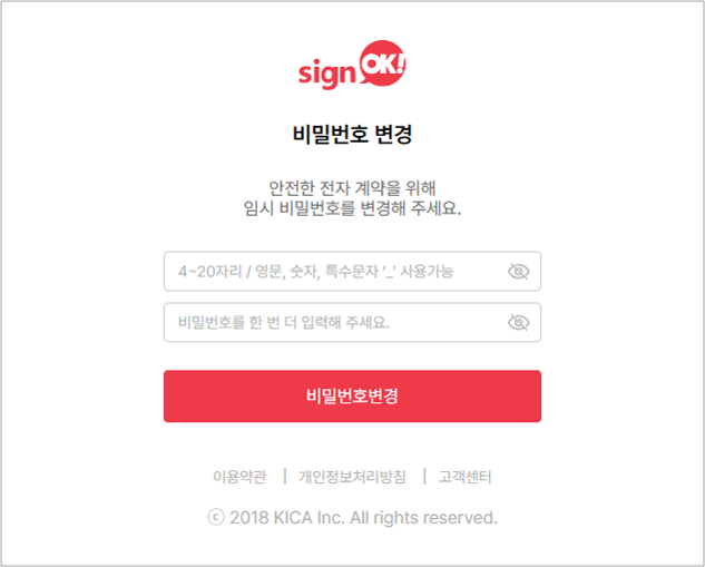 5. 새로 사용할 비밀번호를 입력 후 [비밀번호 변경] 버튼을 클릭합니다.