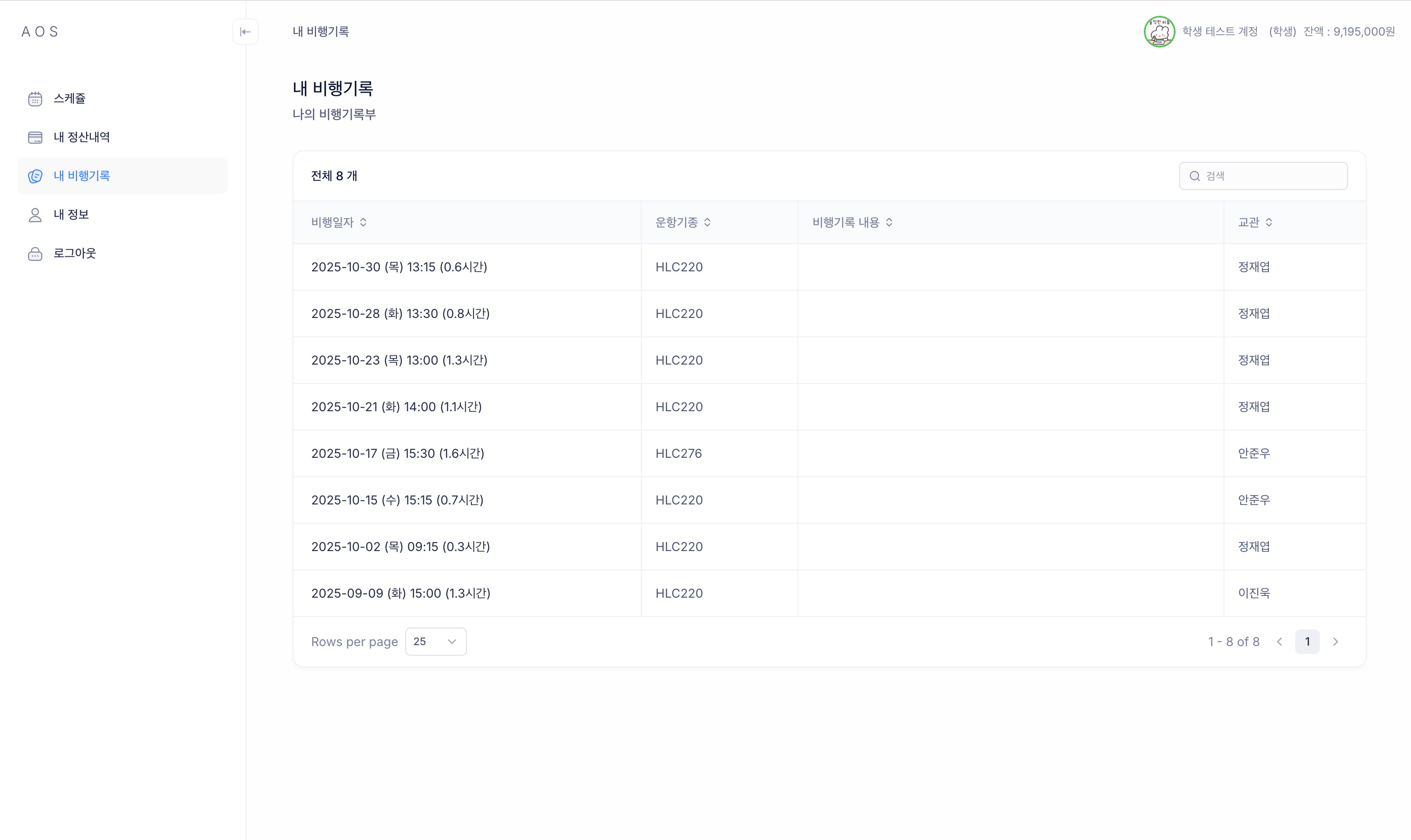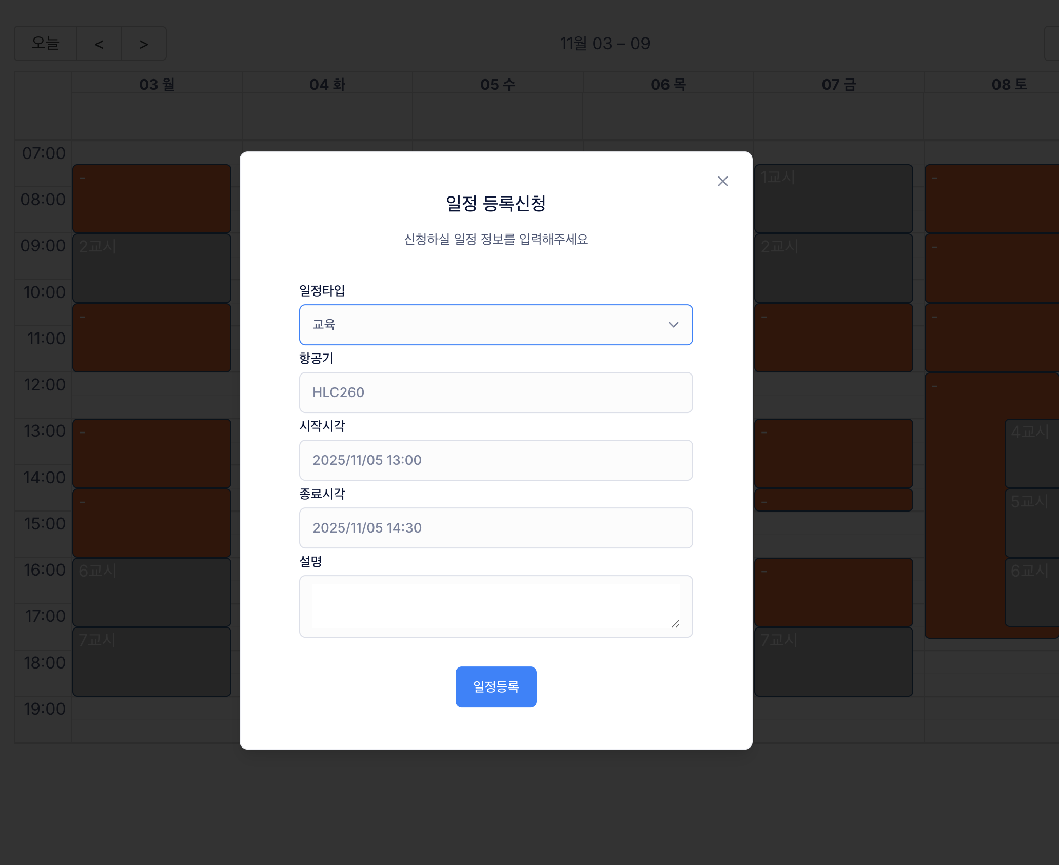 학생 및 회원들이 본인의 스케쥴을 직접 예약하고 승인받을수 있는 하늘누리 비행학교만의 운항관리시스템입니다.