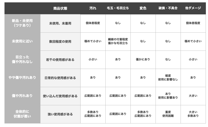 商品クオリティに関する詳細は以下をご確認ください。