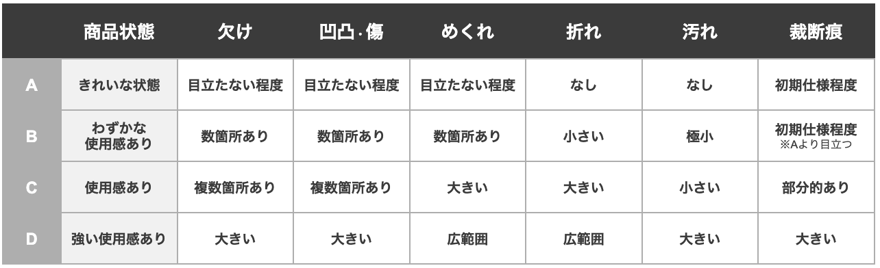・状態表の記載はあくまで一例です。商品によって状態レベルの基準は変動する場合があります。