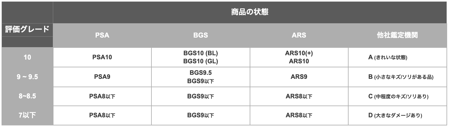 ※カード本体(ホルダー内部)の状態については、各鑑定機関に準ずるものとして確認いたしません