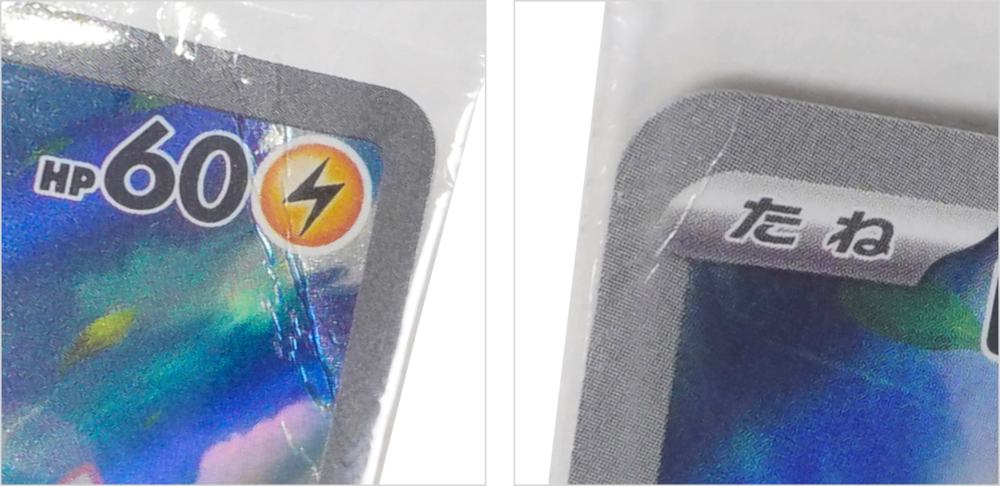 なお、パックが未開封のカードについて、製造や流通の過程で発生し得るパックへの軽微なダメージは初期仕様の一つと判断しています。