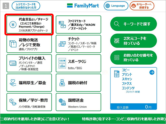 ファミリーマートでのお支払いは、店頭に設置のマルチコピー機の操作が必要です。