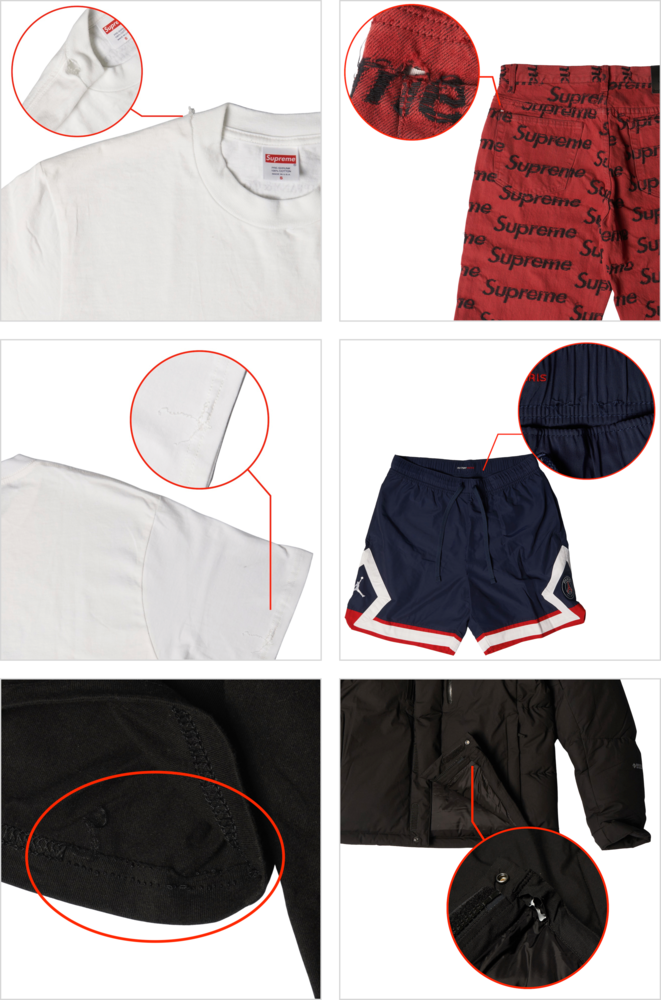 出品時はアパレル(衣類)の事前検品手順に従い、商品全体をしっかりと検品してください。