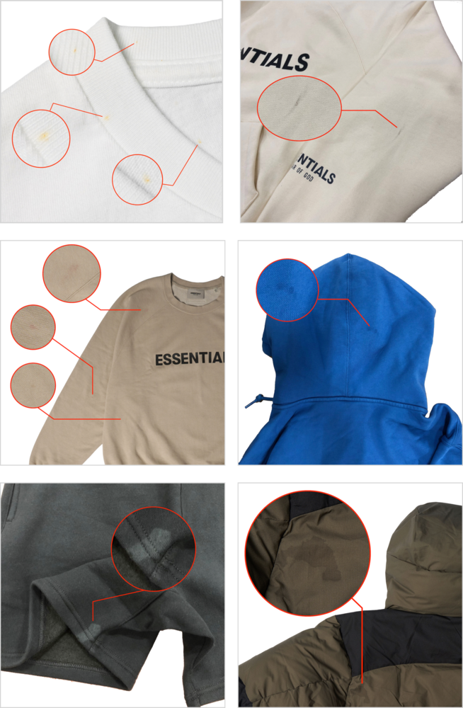 また、初期(製造・正規店販売時)から汚れ・シミ・毛玉が付着している個体が多く発見される商品についてもガイドライン基準を満たすものとしております。