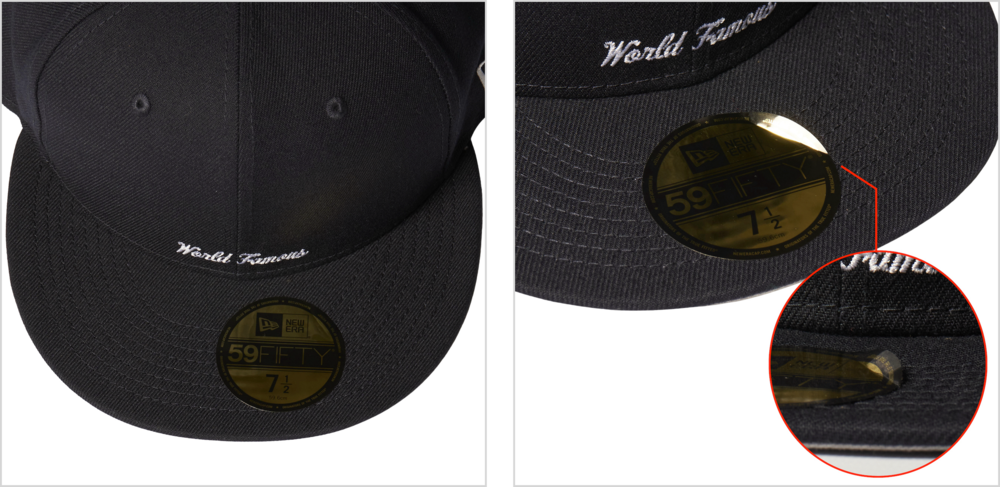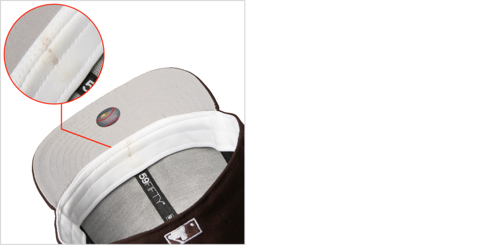 バイザー(ツバ)に接着しているシールも商品の一部であるため、貼り直した形跡やシールの折れを確認した場合は、ガイドライン基準を満たしていないと判断いたします。