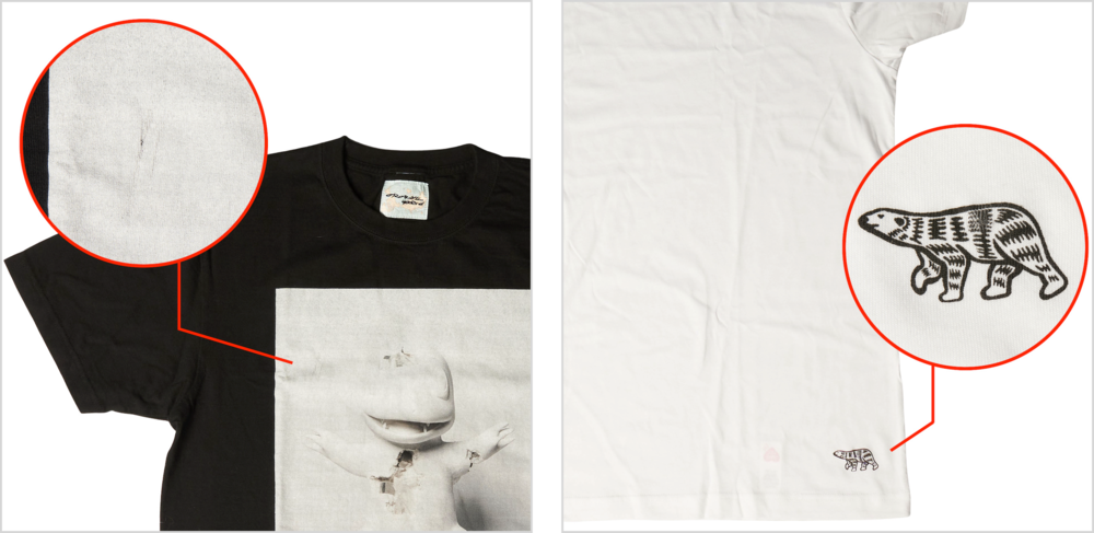 軽微なプリントや刺繍の傾き、位置のずれは、正規店購入時でも確認ができていることから、ガイドライン基準を満たすものといたします。