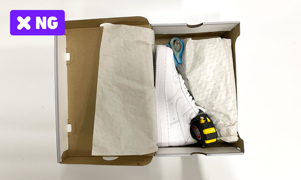 When packing sneakers with apparel items (small items, etc.), please do not put the apparel items (small items, etc.) inside the sneaker box, but pack them outside the box.