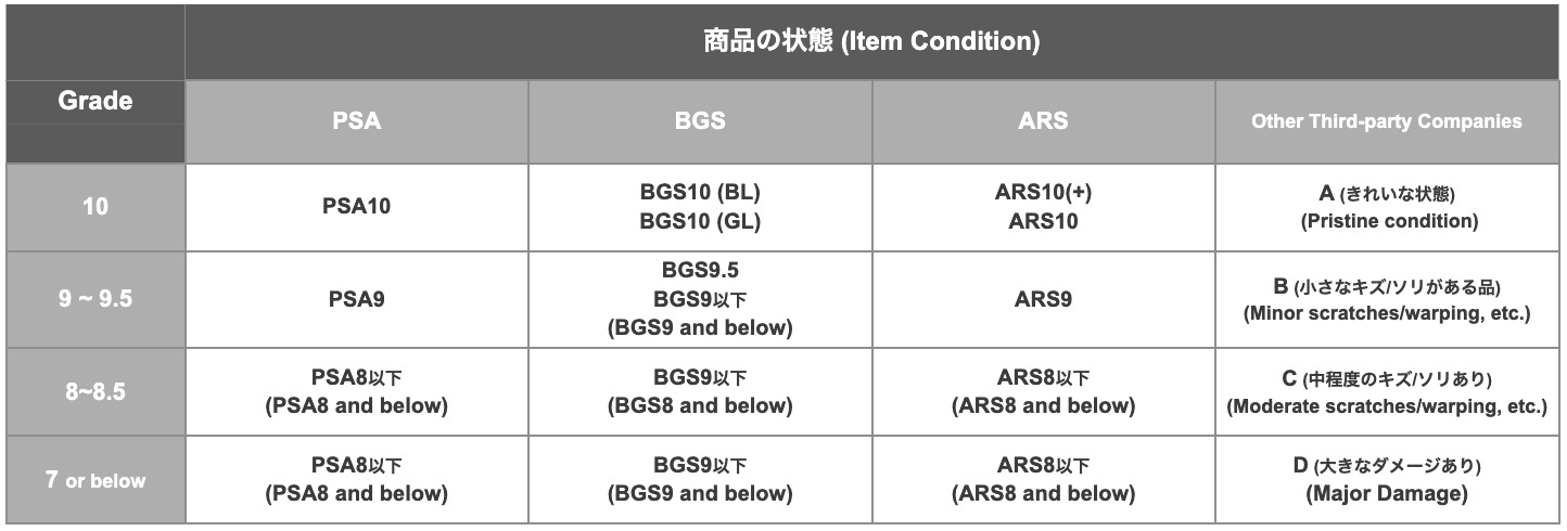 *The condition of the card itself (inside the holder) will not be checked regarding whether it conforms to the grade assigned by the third-party authentication company