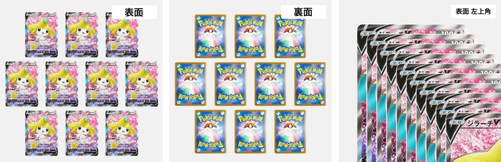 For pictures showing the front and back of the cards, please make sure that they do not overlap.