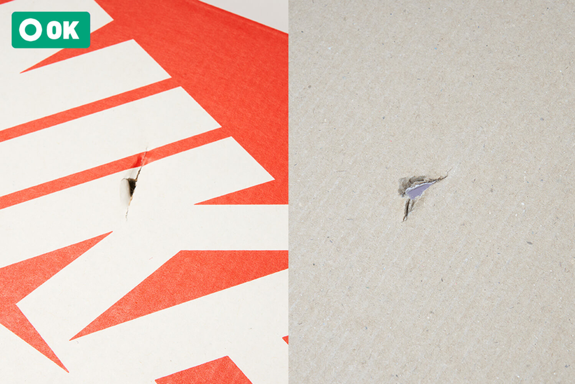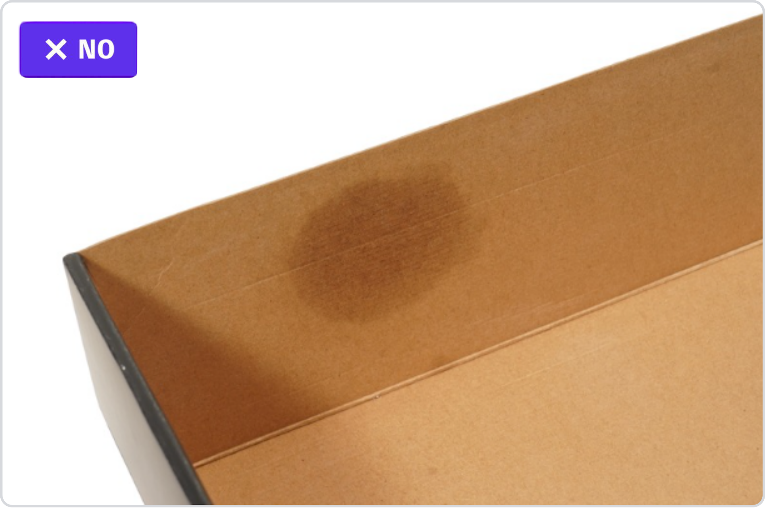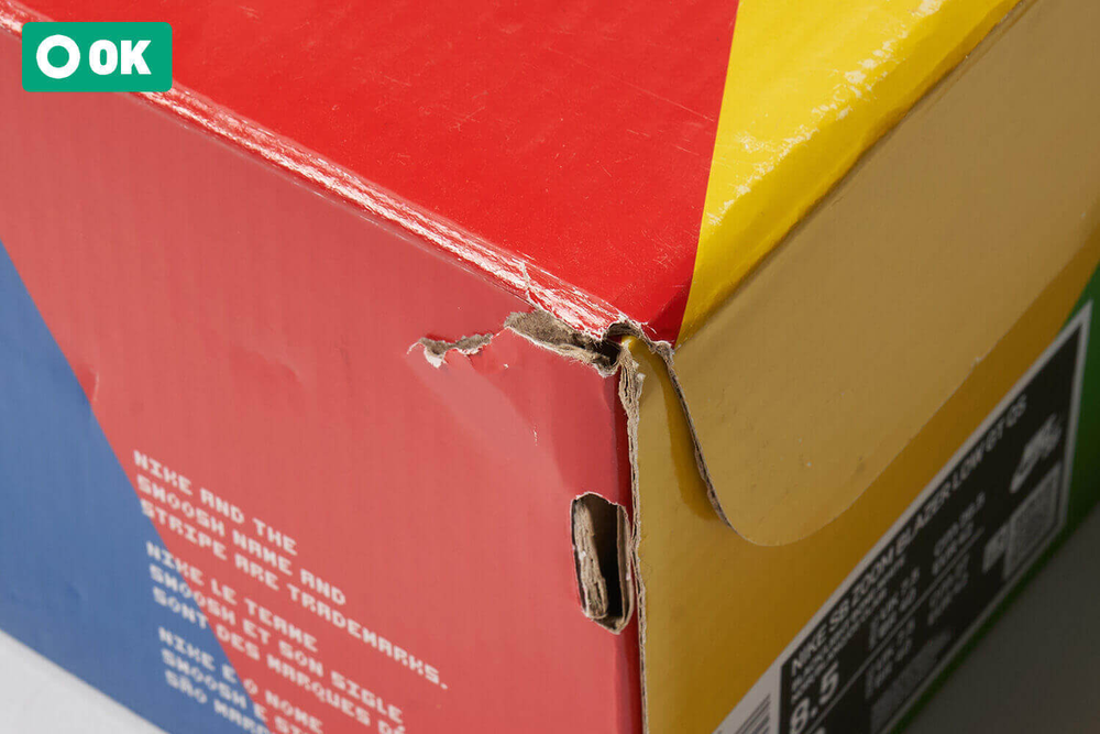 Small tears, scratches or stains on the box that can occur from regular transportation or storage of the item will meet our guideline standards.