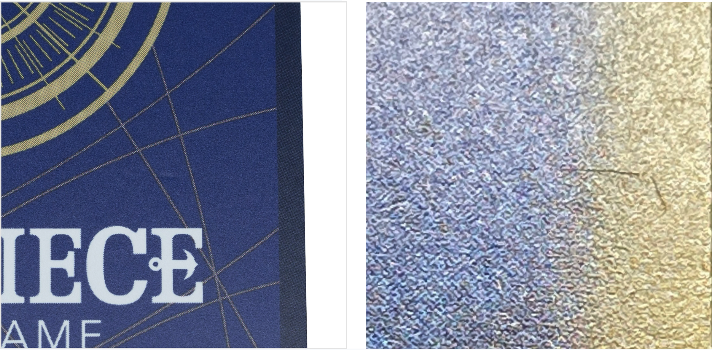 Holo chipping and holo misalignment that may occur during manufacturing process *In multiple areas