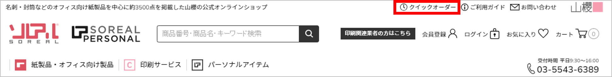 ページ上部の「クイックオーダー」をクリックします。