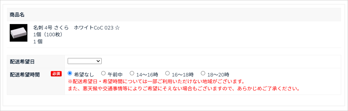 配送希望日および希望時間がある場合は設定をしてください。