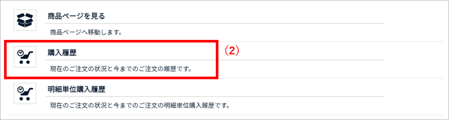 (3)購入履歴の一覧より、領収書を発行(表示)する注文のオーダーIDをクリックしてください。