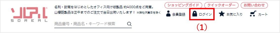 (1)「ログイン」ボタンを押し、SOREALにログインしてください。