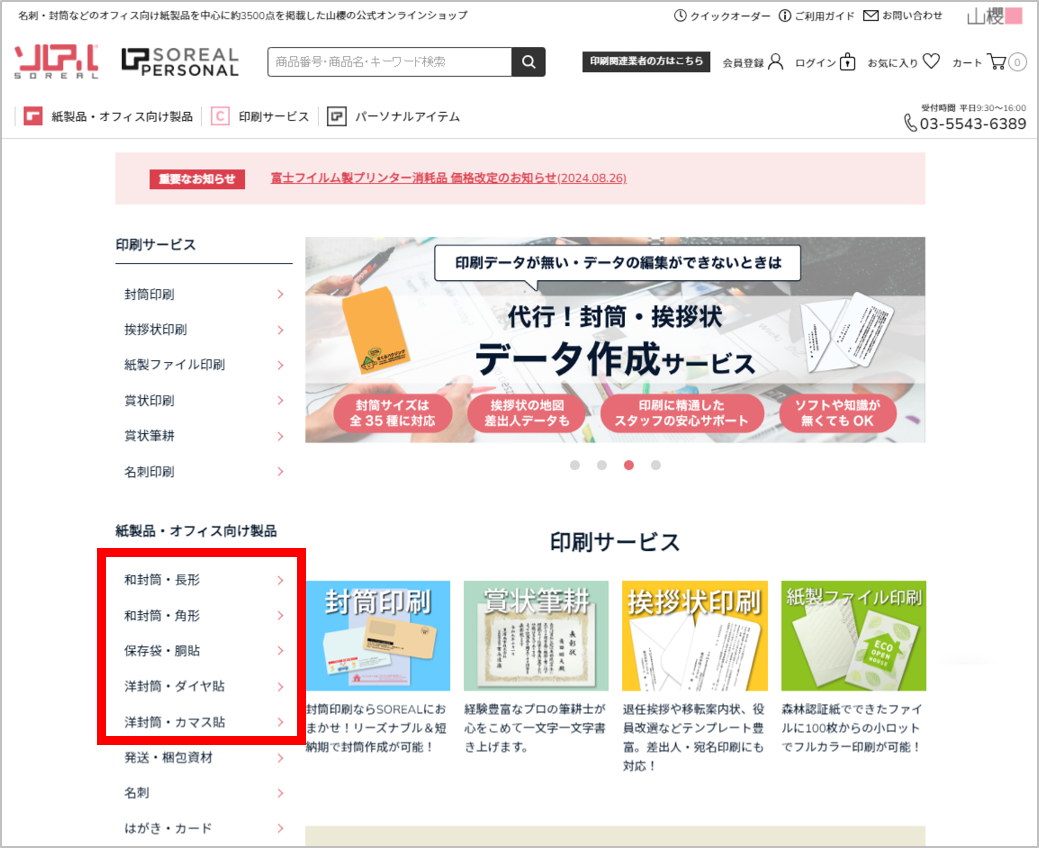 カテゴリよりご希望の封筒をお探しください。