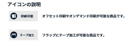 印刷や加工が可能な商品は、アイコンで確認できます。