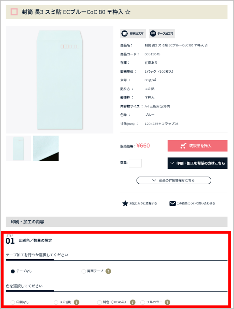 ※商品にテープ加工のみを追加する場合、印刷方式は「印刷なし」を選択してください。