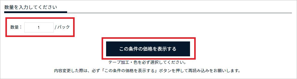 発注数量を入力し、「この条件の価格を表示する」をクリックしてください。