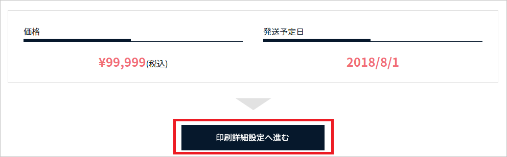 価格と発送予定日が表示されますので、内容にお間違いが無ければ「印刷詳細設定へ進む」ボタンをクリックしてください。