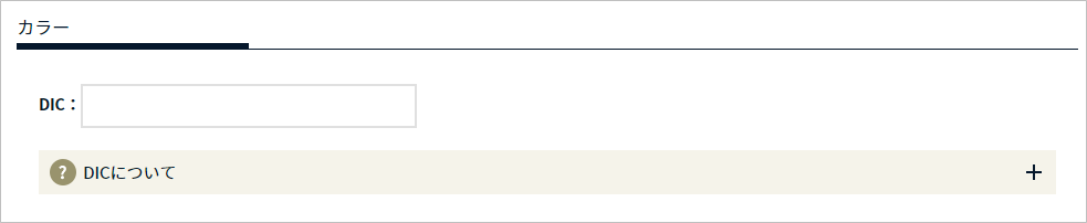 特色:選択した場合のみ下記の入力フォームが表示されます。DICの色番号を入力してください。
