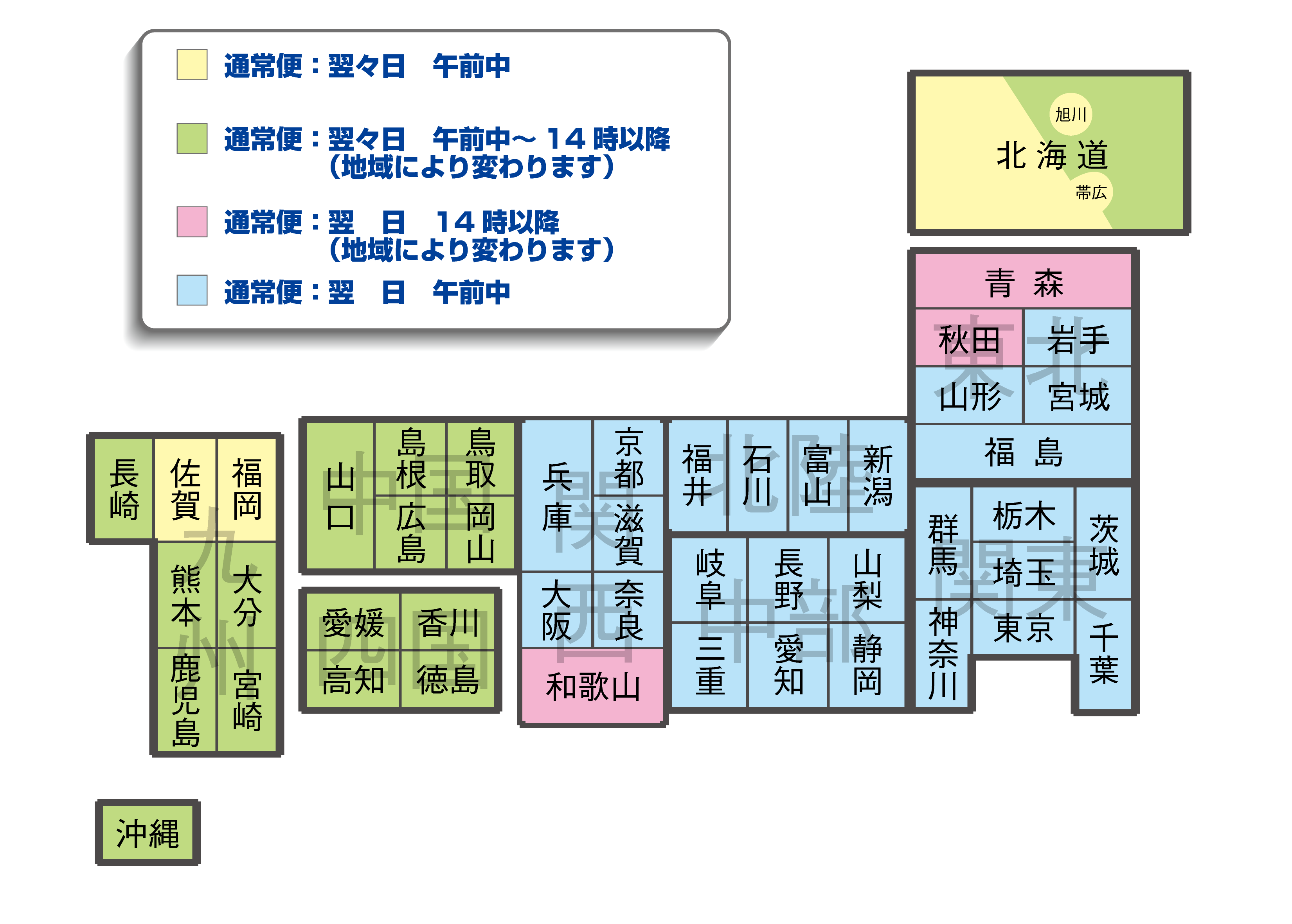 (離島、一部エリアでは到着予定日が図とは異なります。)