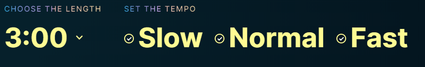 At the top of the page, you can set the Length and Tempo (BPM) to match your project’s pacing.