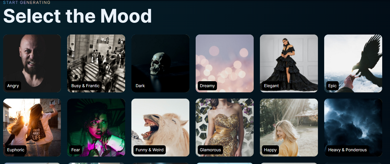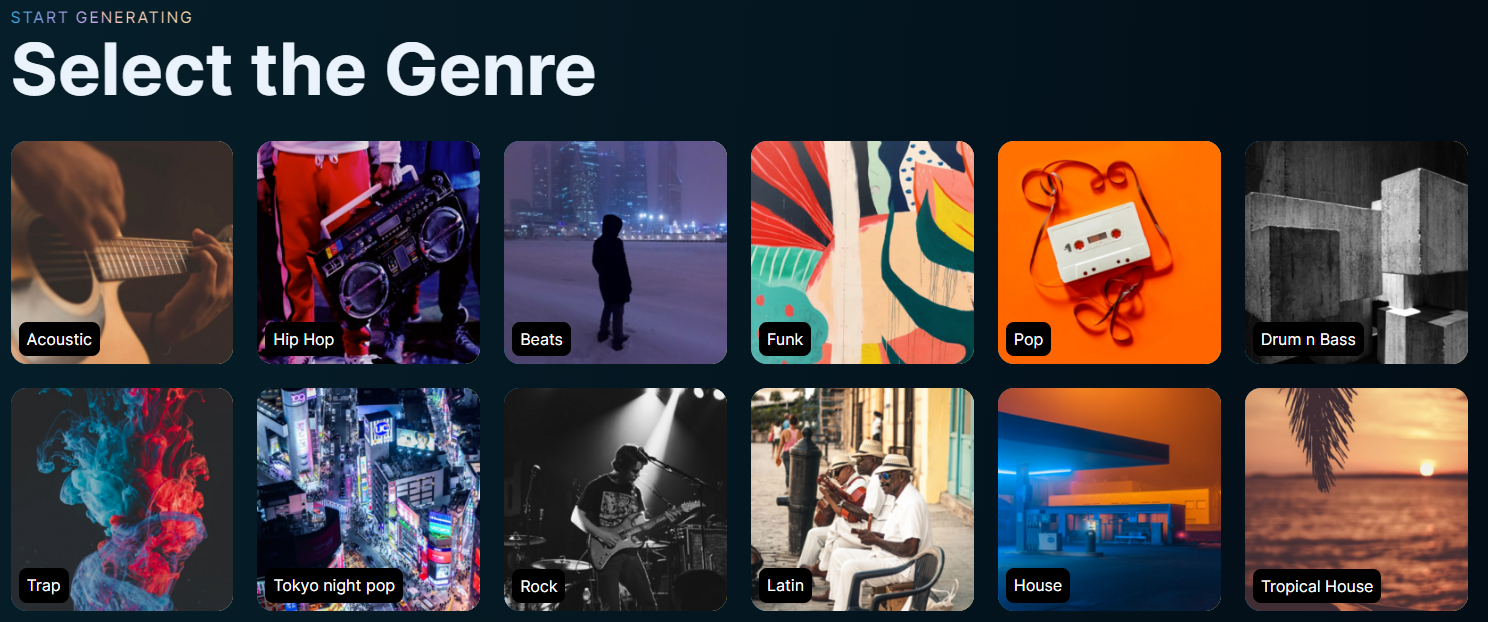 Start by heading to our Generate Music section. Here, you can select various tags to craft music that fits your vision.