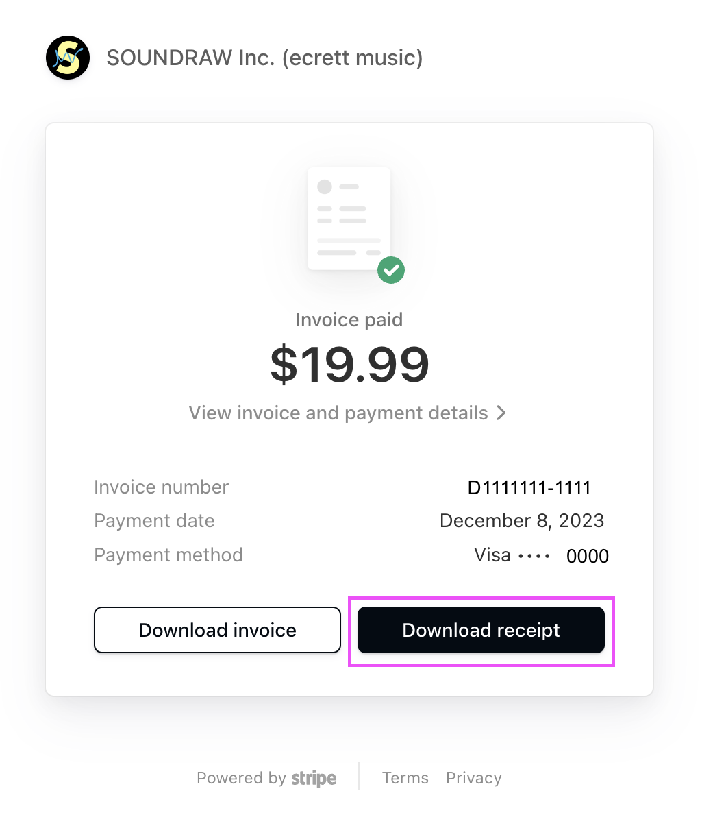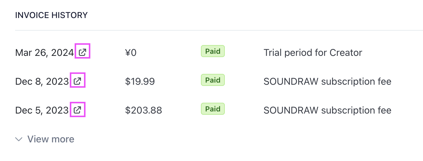 ※2024年3月以前にサブスクリプションを開始した場合は、ご自身で領収書をダウンロードすることはできません。その場合は、support@soundraw.co.jp までご連絡ください。