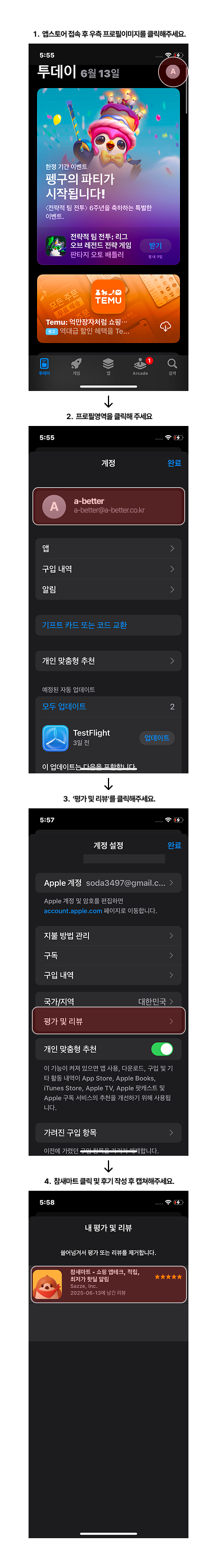 앱스토어 리뷰 캡처방법 안내드립니다.