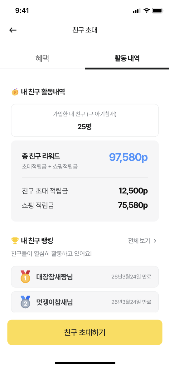 내활동 > 친구 적립탭을 확인해주세요!