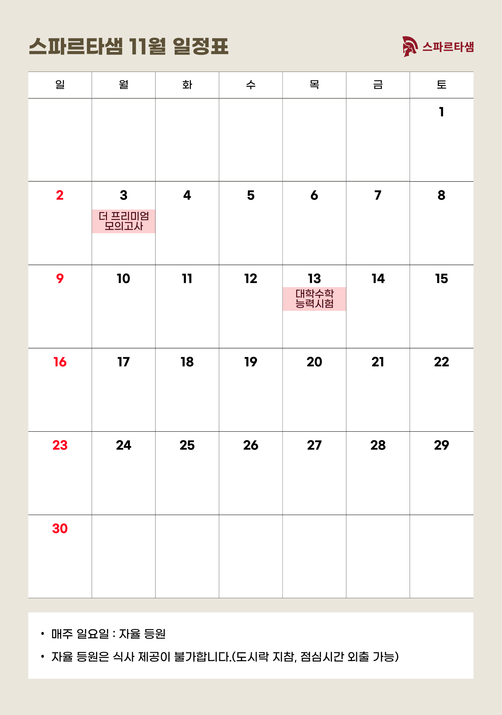 • 자율 학습 (매주 일, 법정공휴일)