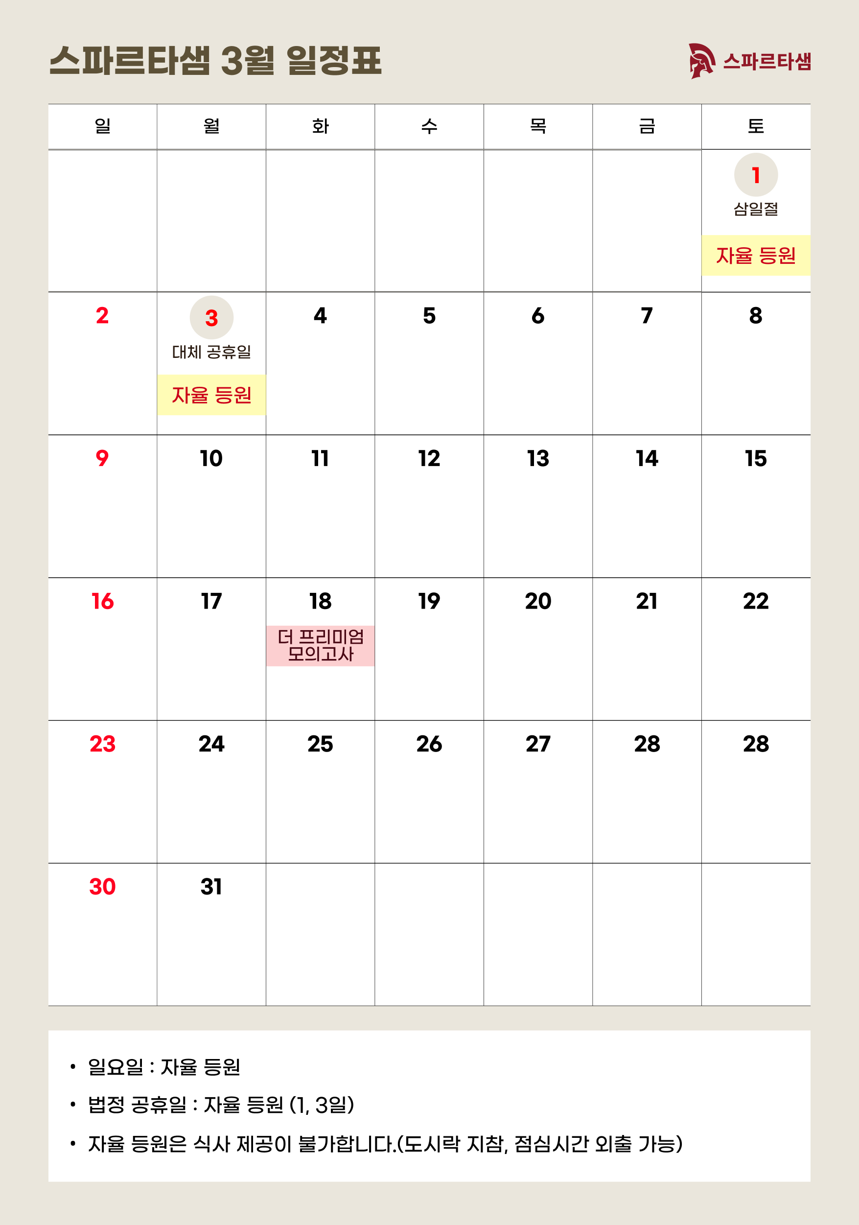 자율 학습 (매주 일, 법정공휴일)