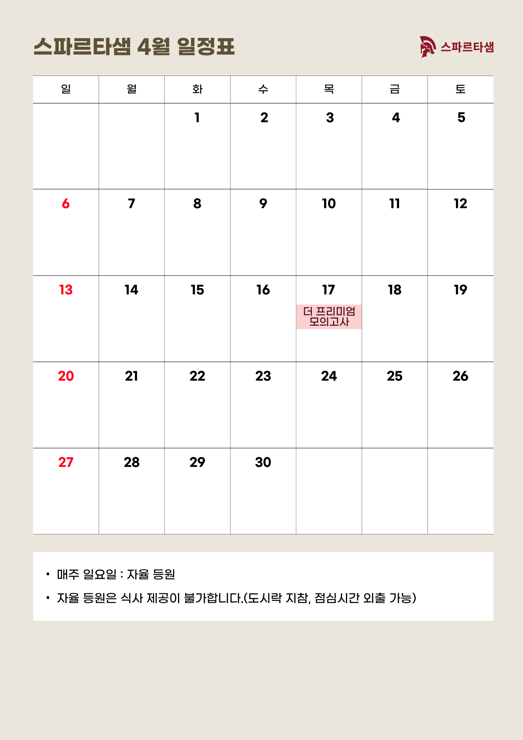 22시 이후는 학원 운영 법에 따라 "스파르타샘 스터디카페"에서 자습으로 진행 가능