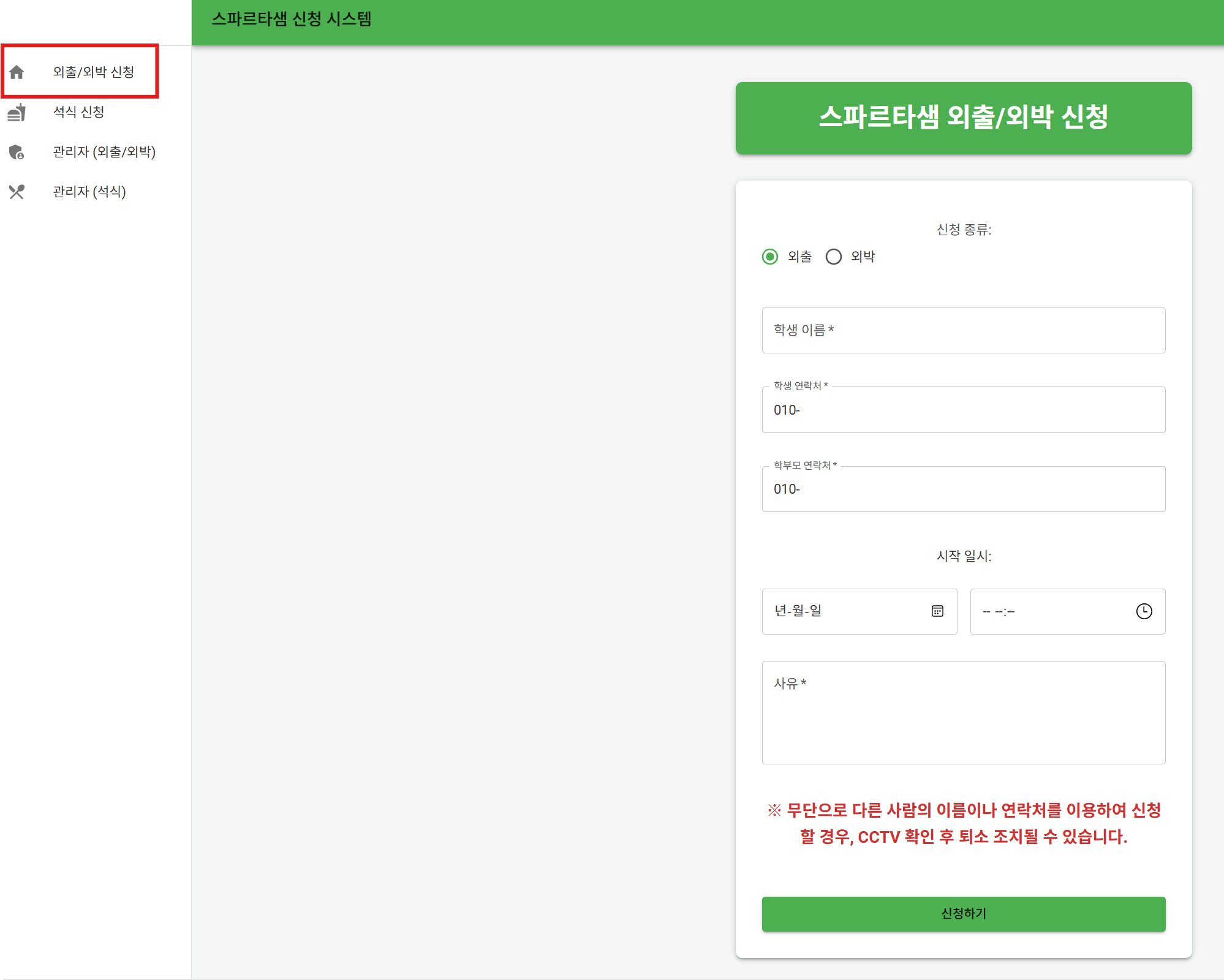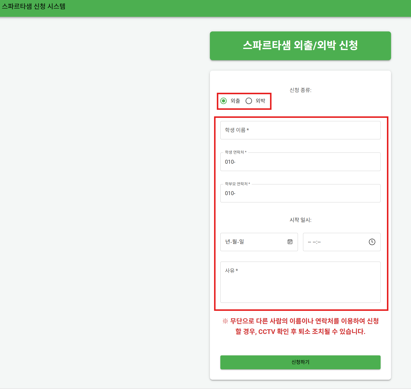 잘못작성 시 외출/외박에 못나갈 수 있어요.
